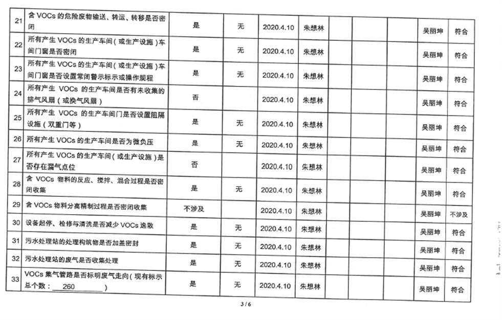 廈門市揮發(fā)性有機物污染防治企業(yè)自查表 (2020年 第三季度)