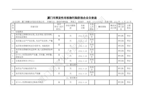 2022年第二季度揮發(fā)性有機物整治企業(yè)自查表