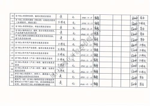 2022年第四季度揮發(fā)性有機物整治企業(yè)自查表