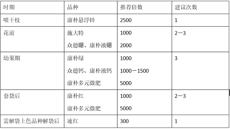 ?。?)推薦施肥套餐(根據(jù)目標(biāo)產(chǎn)量、地域、品種、樹(shù)勢(shì)、樹(shù)齡、地力等適當(dāng)調(diào)整)
