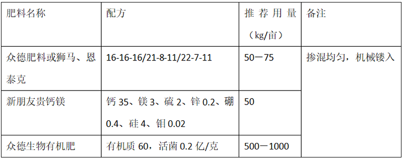 F、備注:眾德集團(tuán)科技服務(wù)中心專(zhuān)注作物高產(chǎn)高效栽培,由于集團(tuán)產(chǎn)品較多,國(guó)產(chǎn)進(jìn)口皆有,不同區(qū)域有不同的成熟產(chǎn)品套餐組合推薦,詳咨詢電話0535-6857828轉(zhuǎn)各作物經(jīng)理。
